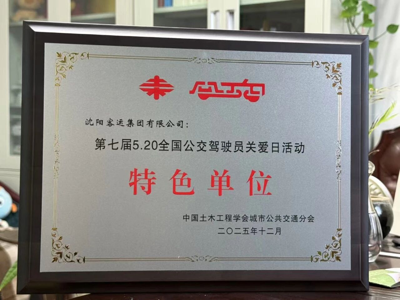 12月5日,從哈爾濱召開的“中國土木工程學會城市公共交通分會十一屆五次理事會會議”暨“2025城市公共交通學術年會”上傳來喜訊:沈陽客運集團榮獲“第七屆5·20全國公交駕駛員關愛日活動特色單位”稱號。