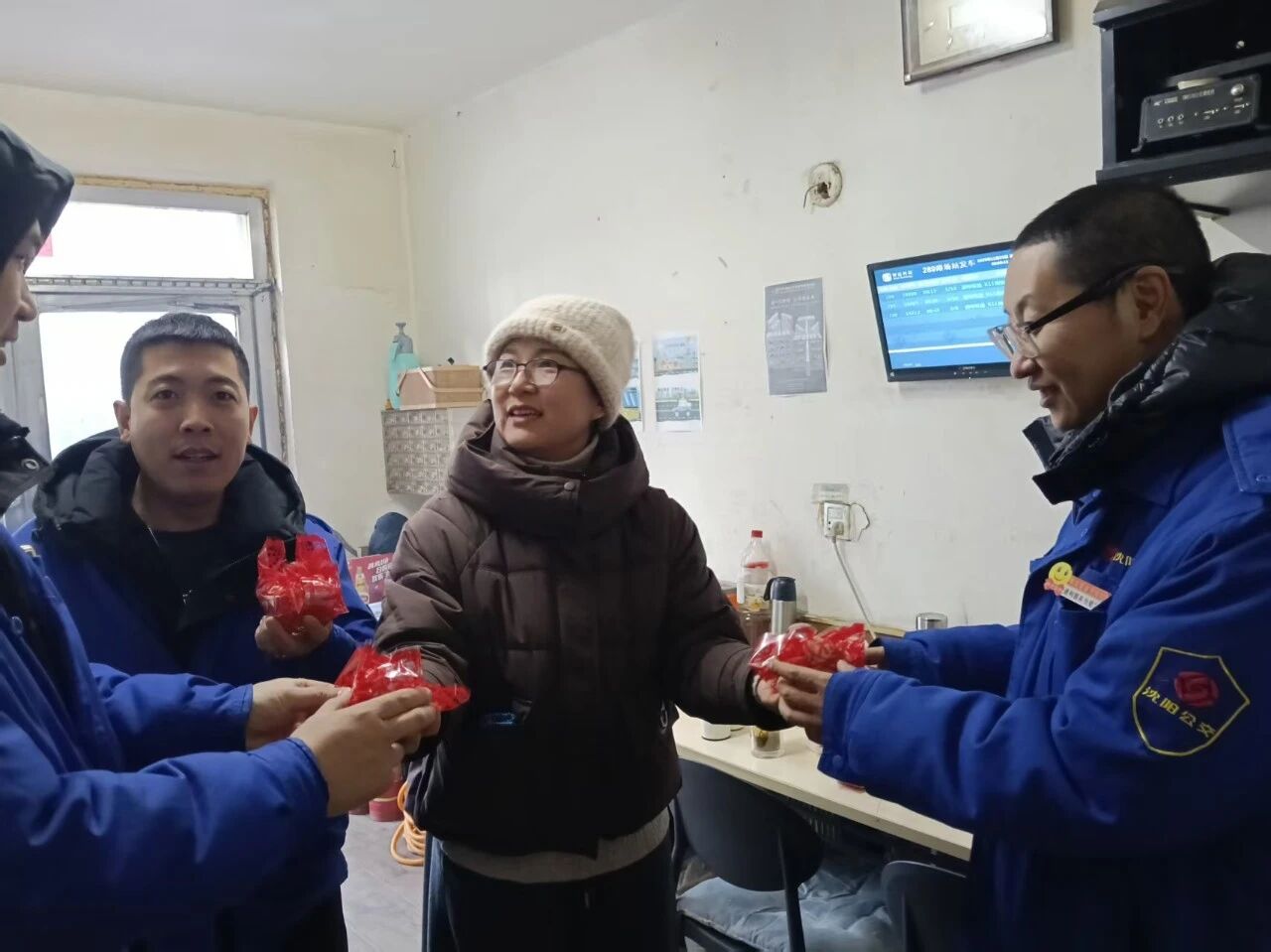 寒冷冬日,128路車隊休息室內(nèi)暖意融融。一份份精心包裝的“平安果”,被送到結(jié)束運營返場的駕駛員手中,伴隨著一句句樸實而鄭重的安全叮嚀。
