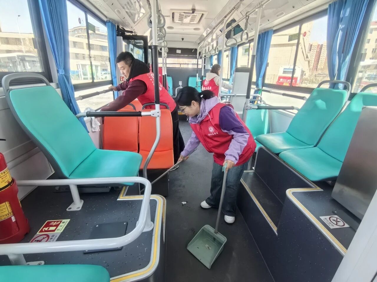通運公司黨員與社區(qū)志愿者齊聚261路終點站,手持掃帚、鐵鍬、抹布等工具,分工協(xié)作、默契配合。有的蹲在墻角,仔細清理越冬積存的枯枝落葉和掩埋深處的塑料垃圾;有的揮動鐵鍬,鏟除堆積已久的雜物與頑固污漬;有的登上公交車,對車身、車窗、座椅進行全方位擦拭清潔。經(jīng)過一個小時的緊張奮戰(zhàn),場站角落的衛(wèi)生死角被徹底清理,公交車內(nèi)外窗明幾凈,原本略顯雜亂的場站面貌煥然一新,為乘客營造出更加舒心、安心的出行體驗。